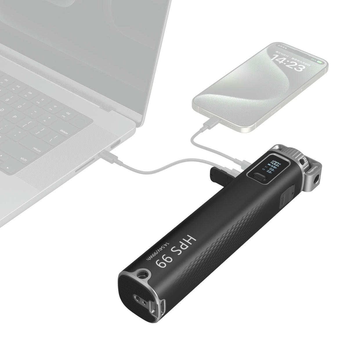 SmallRig HPS99 Handheld Power Stick 4553 là pin di động công suất cao, sạc nhanh (tới 100W) và sạc đầy trong 2 giờ, trang bị pin LG, nhiều cổng (2 USB-C + D-Tap), giao diện đa dụng và màn hình hiển thị dung lượng, thiết kế công thái học để cầm nắm thoải mái.