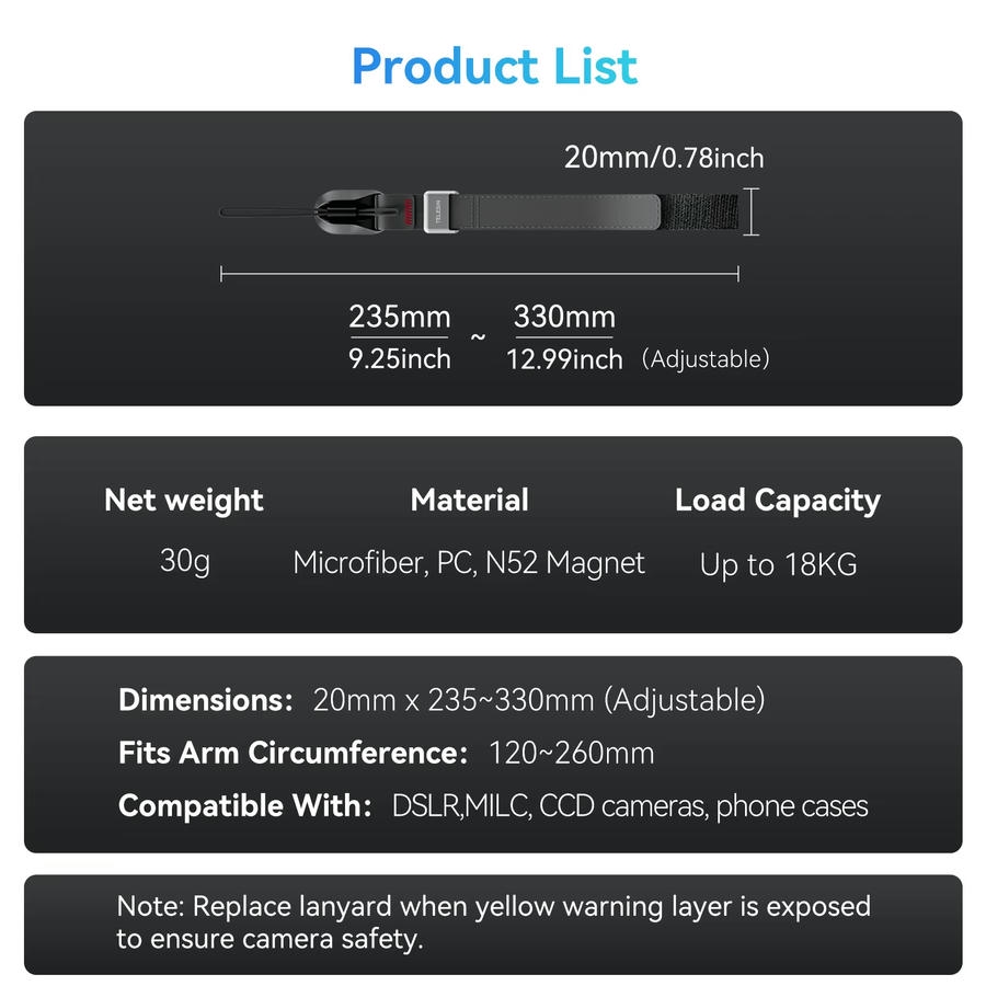 Telesin P10-HWG-01 – sản phẩm này là dây đeo tay đa chức năng TELESIN. Nó phù hợp cho nhiều loại thiết bị như máy ảnh kỹ thuật số, máy ảnh SLR, camera hành động và điện thoại di động.