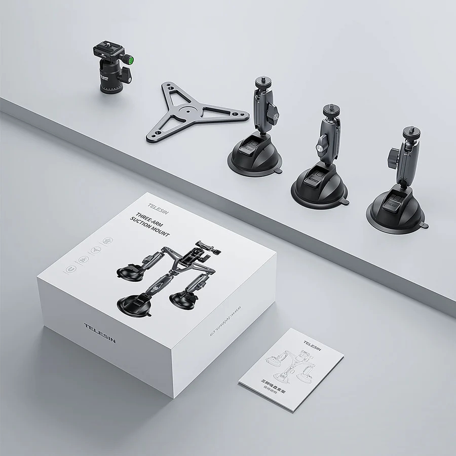 Telesin TE-TSB-001 – sản phẩm là một giá đỡ máy ảnh với thiết kế chân đế chân không, hỗ trợ tính năng quay 360 độ và dễ dàng điều chỉnh. Nó có thể được sử dụng trên nhiều bề mặt khác nhau và tương thích với nhiều loại máy ảnh.