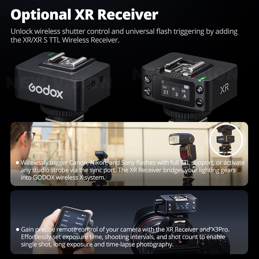 - Hỗ trợ điều khiển từ xa qua ứng dụng Godox trên Android và iOS.
