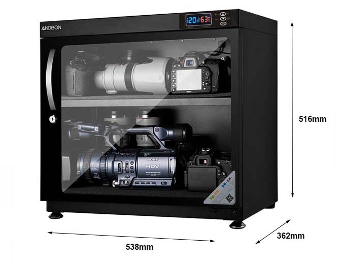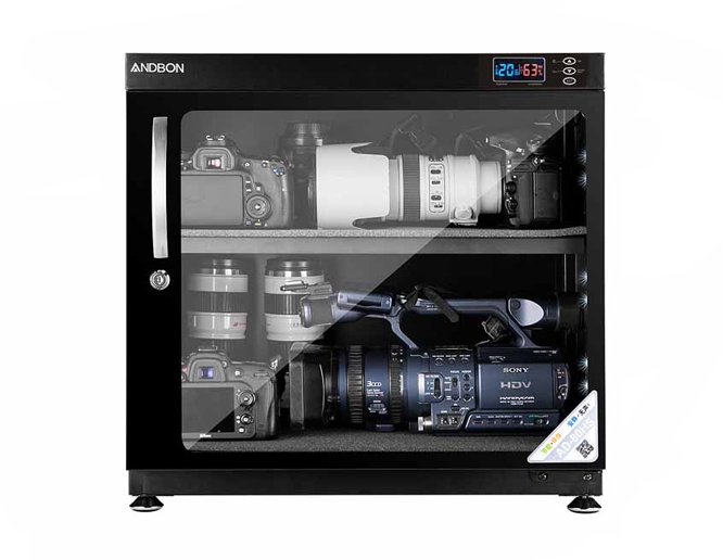 Tủ chống ẩm ANDBON AD-80HS hoạt động trên nguồn điện 110-220V và đi kèm với màn hình LED hiển thị độ ẩm và nhiệt độ, cân bằng độ ẩm tự động.