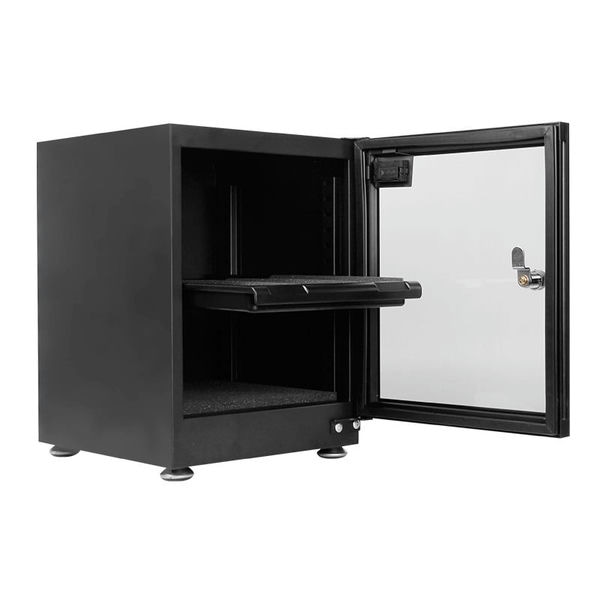 Kích thước ngoài của tủ là 29*33*39 cm và kích thước trong là 28*29*33 cm, đủ rộng rãi để sắp xếp thiết bị một cách tiện lợi. Tủ có khả năng khống chế độ ẩm trong khoảng 35-55%, giúp bảo vệ thiết bị khỏi ẩm ướt và mốc me.