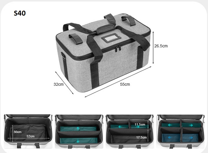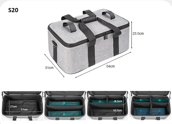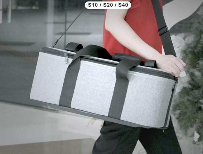 Túi S10/ S20/ S40 vừa có quai đeo, vừa có tay xách tiện lợi cho người sử dụng. Bên trong túi có lớp chống sốc bảo vệ và có vách ngăn chia riêng biệt tránh va đập các thiết bị.