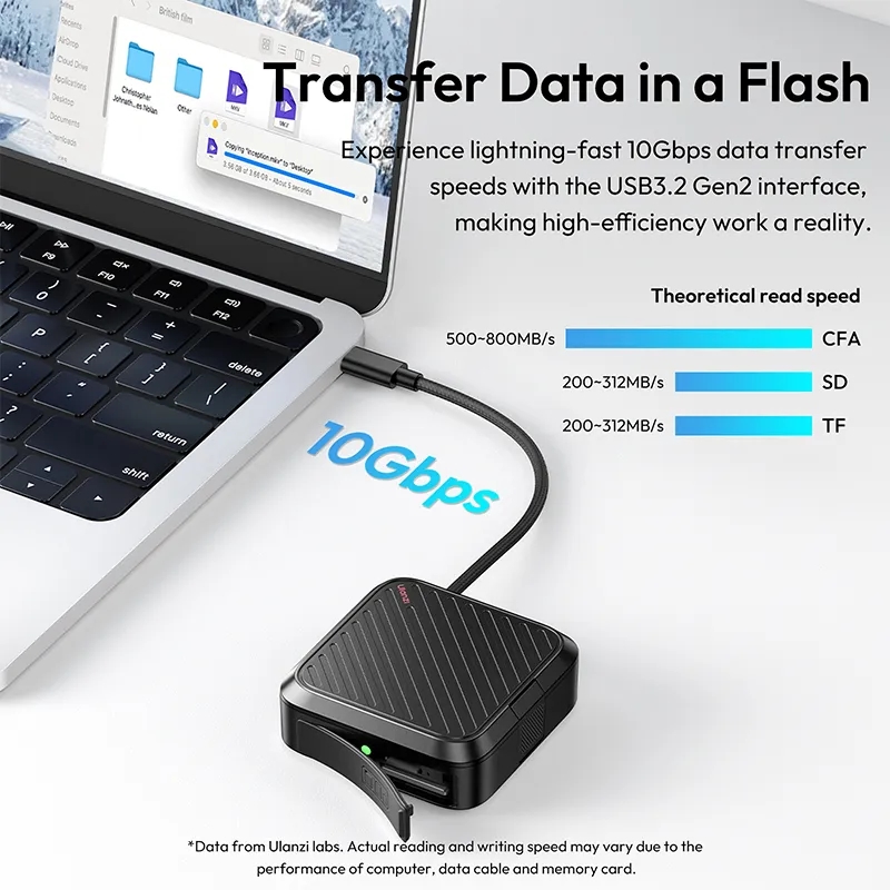 Ulanzi CRC10 – sản phẩm là một hộp đựng thẻ đa năng, cho phép lưu trữ tới 13 thẻ trong một thiết kế gọn nhẹ. Nó cung cấp tốc độ truyền dữ liệu nhanh chóng và khả năng tương thích với nhiều hệ điều hành khác nhau.