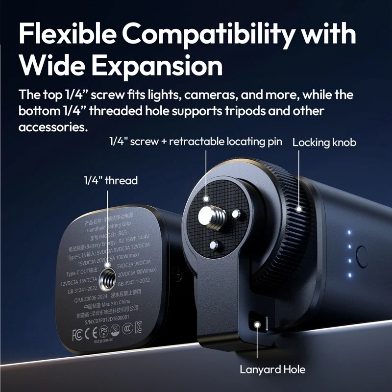 Ulanzi GB5 Handheld Battery Grip P012 là một tay cầm pin cầm tay đa năng, hỗ trợ nâng cao hiệu suất quay phim và chụp ảnh cho các thiết bị như máy ảnh và điện thoại.