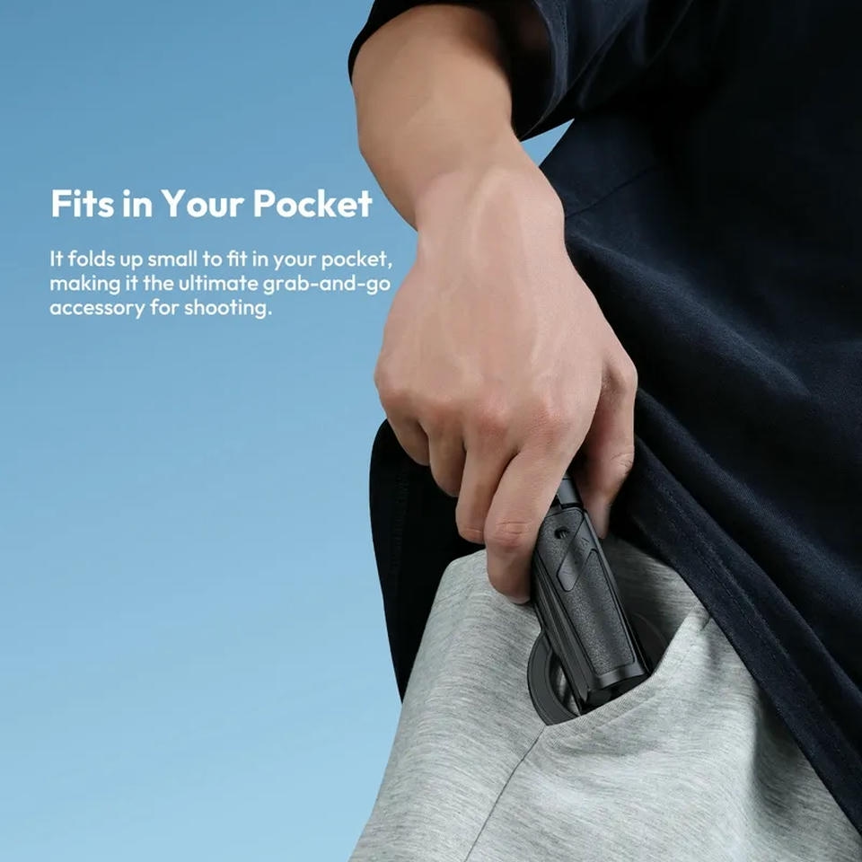 Thiết kế gọn nhẹ, có thể gập lại để vừa trong túi và cho phép điều chỉnh chiều cao linh hoạt. Nó còn đi kèm với điều khiển từ xa Bluetooth và hỗ trợ quay video với góc 360°.