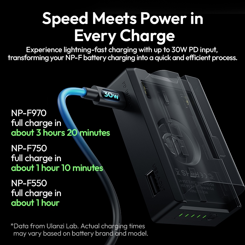 Tấm chuyển đổi pin NP-F P011GBB1 là bộ đế sạc nhanh Ulanzi PA03 dành cho pin Sony NP-F series (NP-F550, F570, F750, F770, F960), hỗ trợ nguồn PD 30W và thiết kế khóa cài (buckle base) để cố định pin khi sạc.
