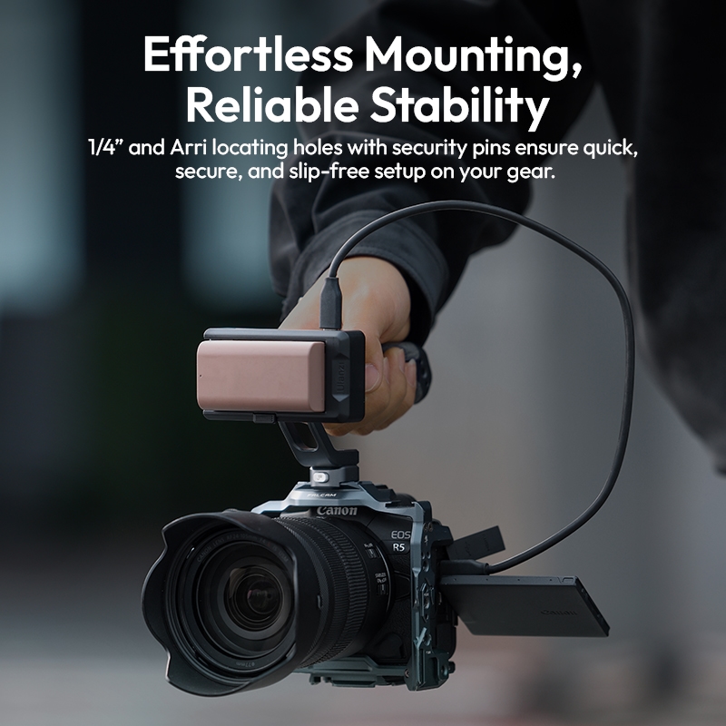 - Lỗ bắt 1/4″ và lỗ Arri với chốt an toàn — đảm bảo lắp nhanh, chắc và không trượt