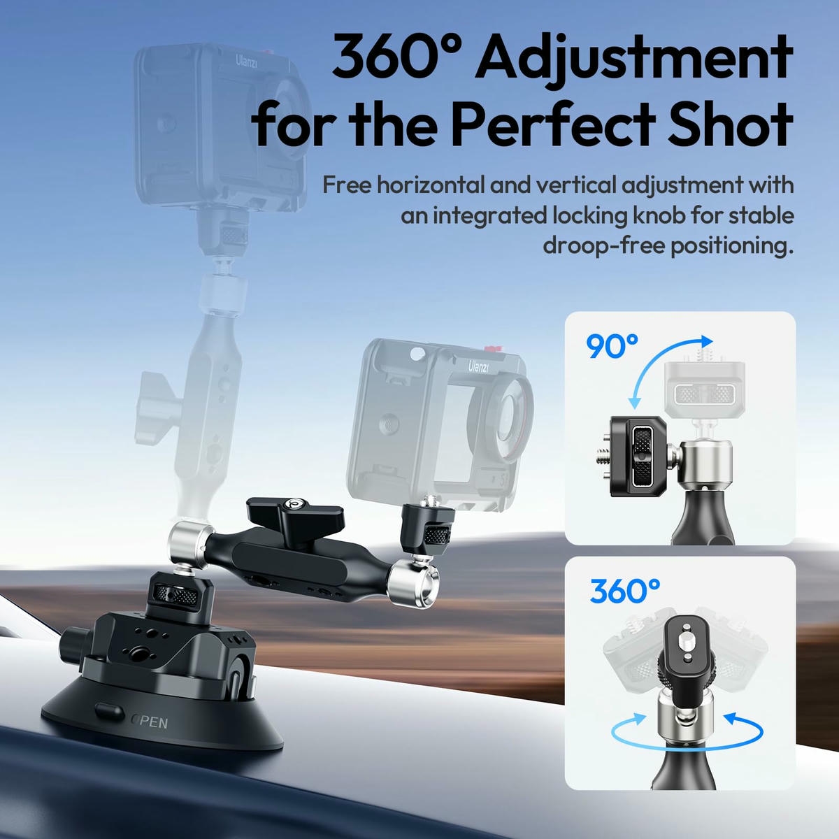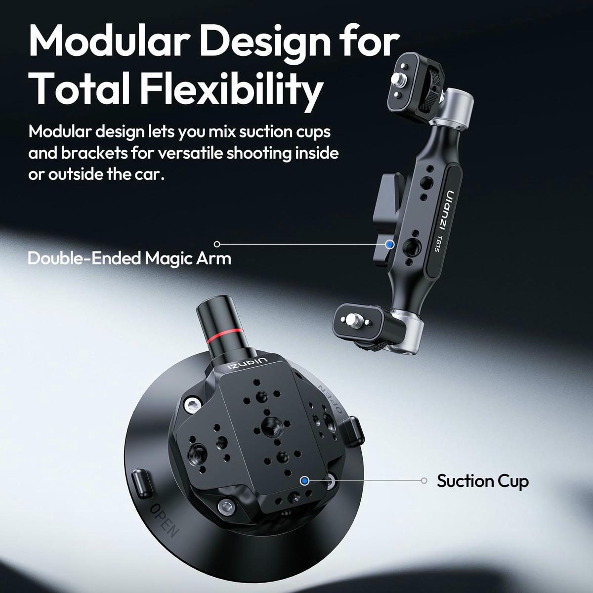 ULANZI TB15 là giá đỡ camera có chân hút chắc chắn, thiết kế chịu lực cao, phù hợp gắn trên xe hơi, thuyền hoặc tường. Sản phẩm có khả năng xoay 360°, tương thích với các thiết bị như DJI OSMO Pocket 3, Insta360 X5 và DSLR.