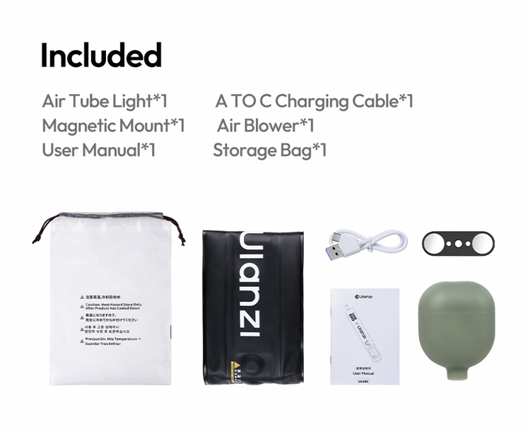 Ulanzi UA20C là đèn ống LED RGB công suất 20W, thiết kế nhẹ, có thể bơm (inflatable?) dùng làm đèn chiếu sáng phụ cho quay video và chụp ảnh. Nhiệt màu điều chỉnh rộng 1800K–10000K, CRI 95 cho độ trung thực màu cao, pin dung lượng 2500 mA