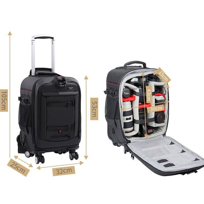 - Có khả năng hỗ trợ thêm đồ bên ngoài và treo tripod hoặc túi đựng lens.