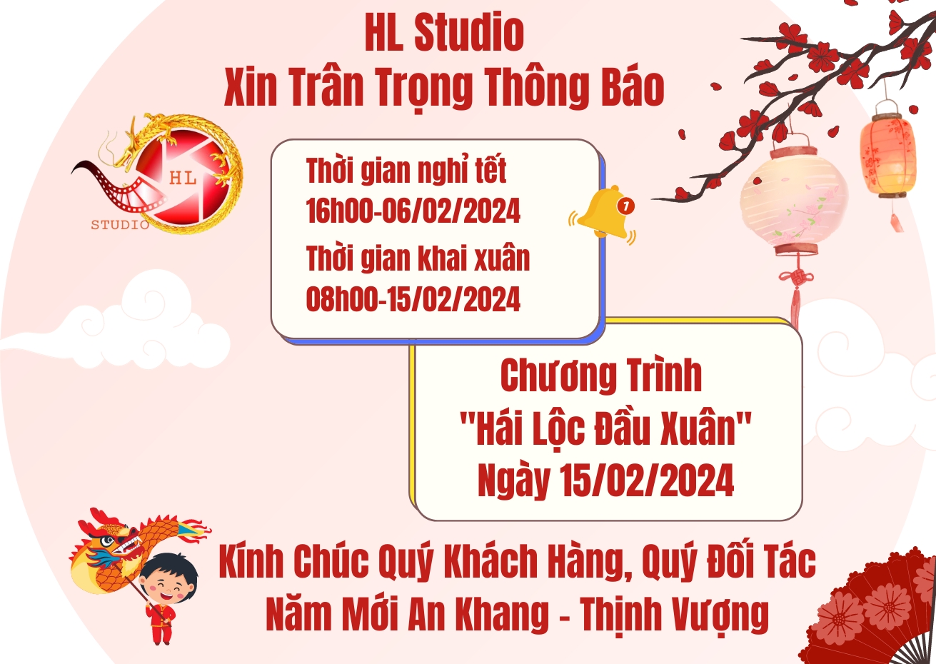 Nhân dịp Xuân đến, HLStudio kính chúc Quý khách và Gia đình năm mới 2024 sức khoẻ, hạnh phúc và thành công!